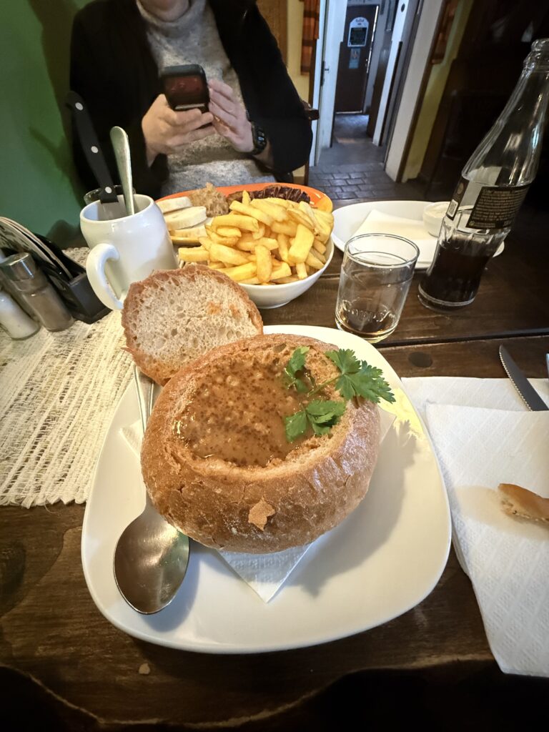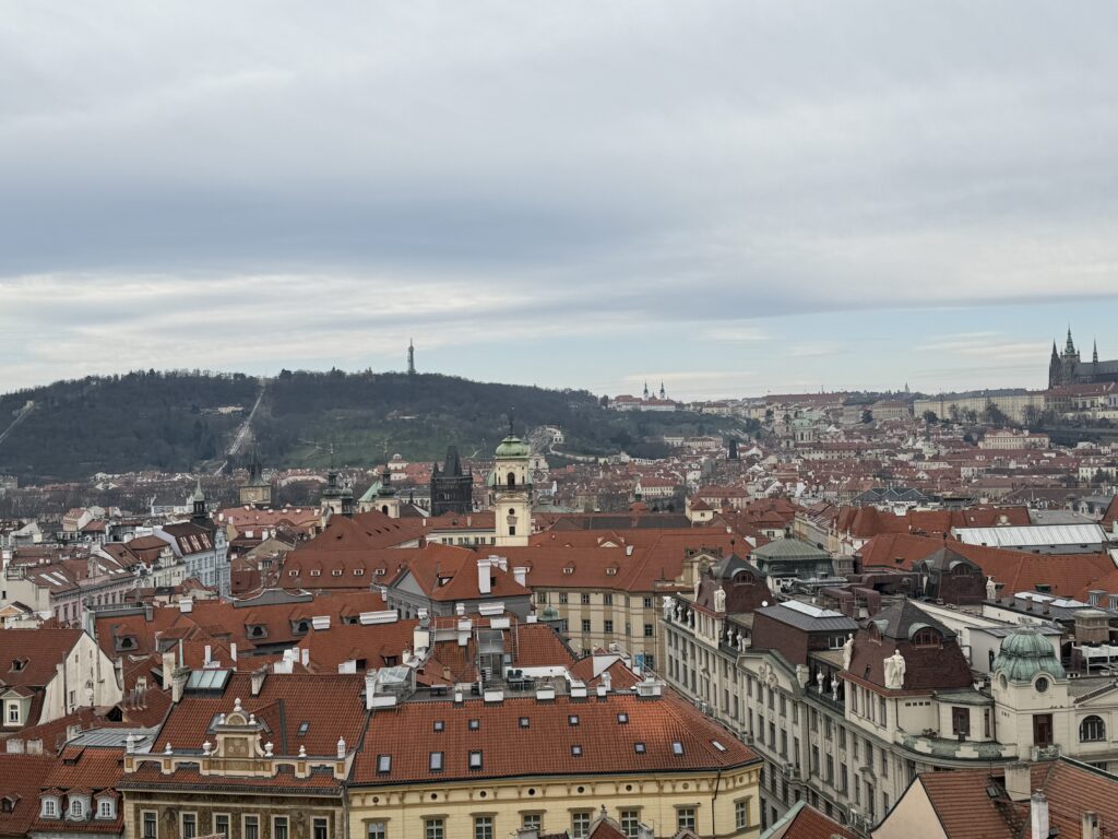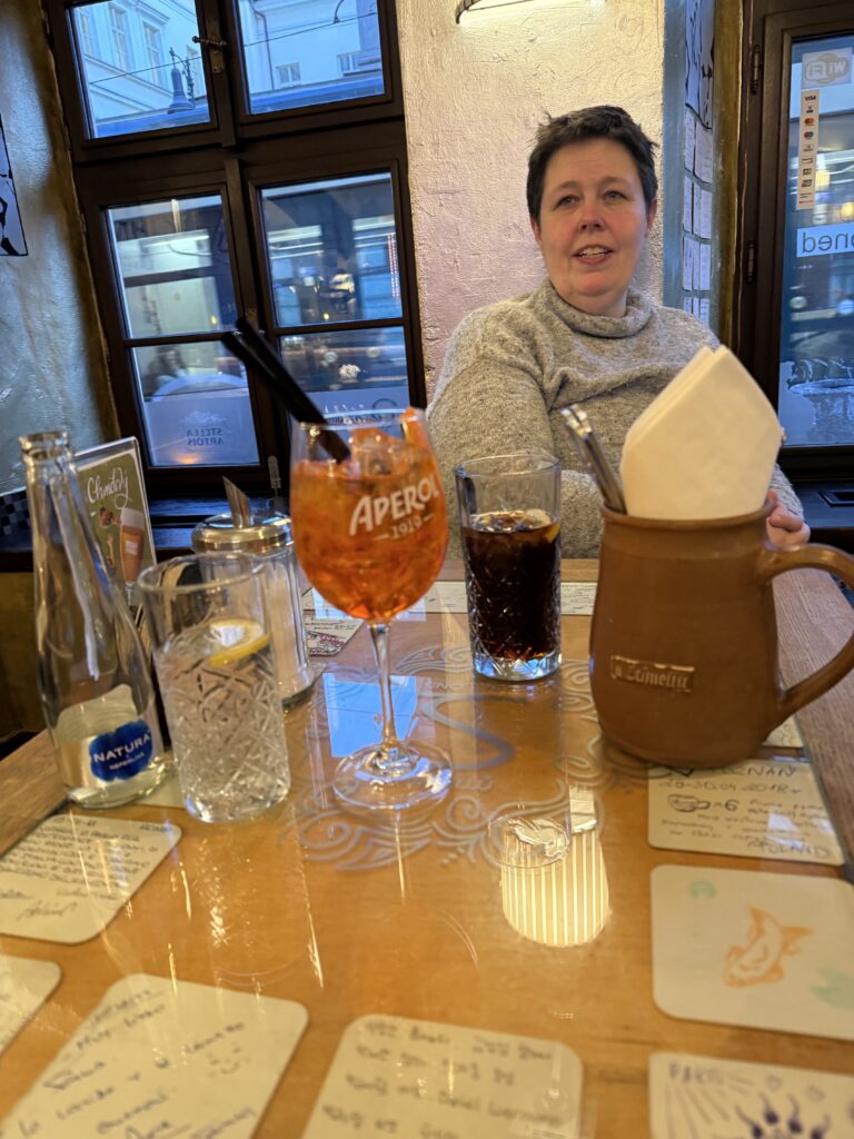 The Augustinian Hotel (click the link, really) was named after the Augustinian Monastery that still operates out of part of the hotel. The before and after parts of the tour let you select luxury or more pedestrian hotels. I think by the time I booked it only the luxury selection was available. On reconsideration, I think I’m glad I booked the Augustinian, like with airfare at this age of my life, if it’s worth going, it’s worth going first-class. We are here for three-days, leaving on Thursday morning for the 6–8 hour bus ride to Budapest. There will be a couple of hour-long breaks for lunch, etc. We have a 4-hour walking tour of Prague scheduled for this morning, we’ll see how we do on it and maybe schedule other events, dinners, etc. later.